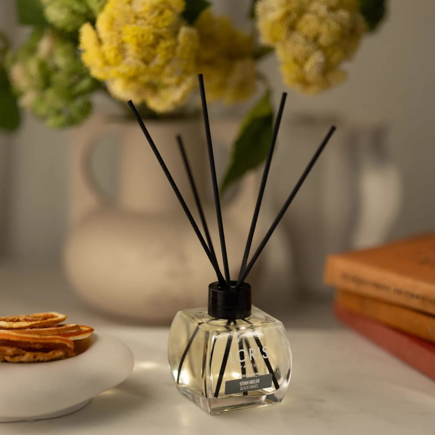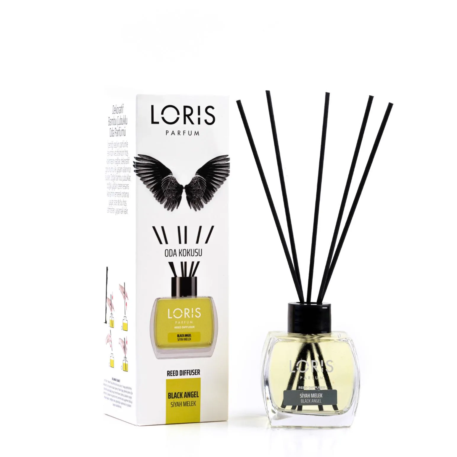 Black Angel Reed Diffuser. One of three angels created for you by Loris. Black Angel brings oriental notes of sandalwood creating intimate atmosphere.